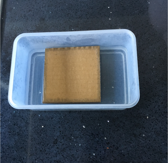 ②將試樣浸入80℃以上的溫水中,使瓦楞紙板各層自然分離