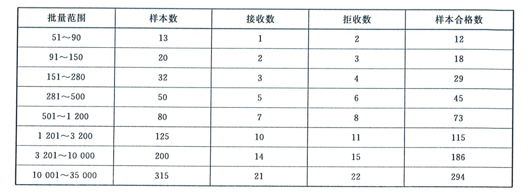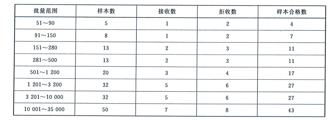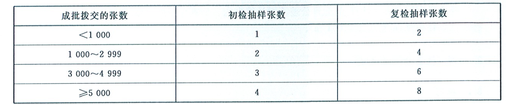 表3規(guī)格尺寸抽樣方案 單位:張