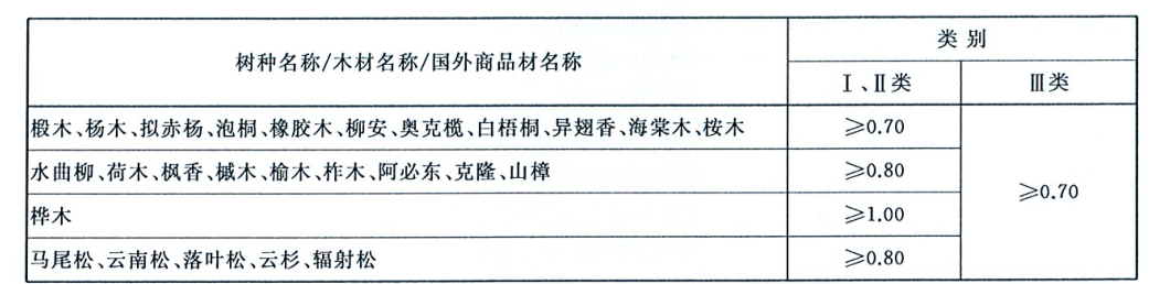 膠合板膠合強度應(yīng)符合表6規(guī)定